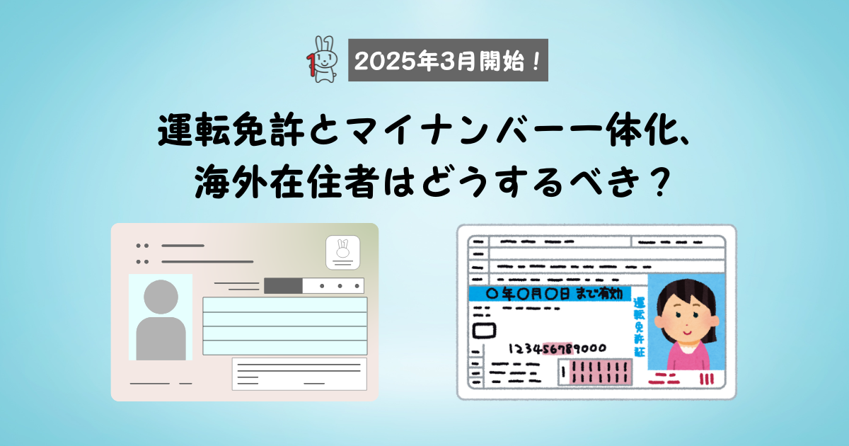 運転免許証とマイナンバーの一体化は便利ですが、海外赴任者にとってはまだ慎重に判断すべき制度です。海外からのオンライン申請はできず、紛失時のリスクもあるため、当面は今まで通りの免許証を持つのが無難かもしれません。